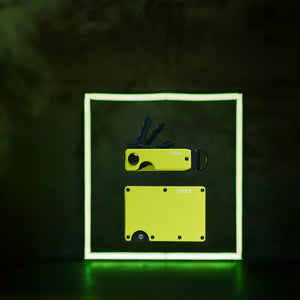 Our neon green essentials, paired with our strongest black accessories. Find the perfect combination of light and dark in the Hyper Lime X Black collection. Carry a spark of innovation with wallets, Keycases, water bottles, and more.