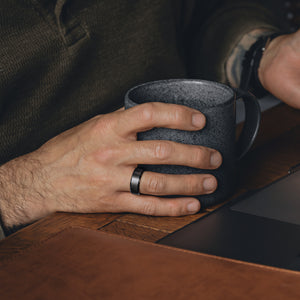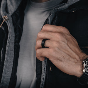 The ring is solid and came with a silicone band neatly packed beside it in the case. The beveled ring looks great and the engraving on the inside is a nice addition. The band feels well made, "heavy" and "manly" for sure. Communications with customer service has been very good. Overall I am very happy with this purchase.