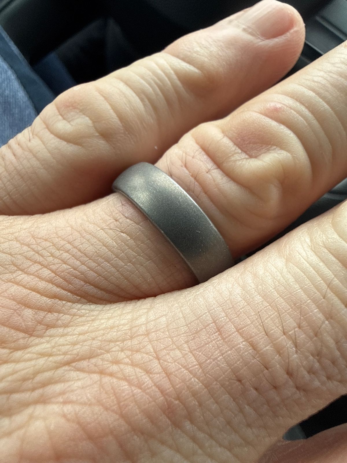 He really likes the width—it’s not too bulky and not too thin. He had been wearing a rubber ring we purchased from a sporting goods store for the past year, so this was a great upgrade. He also mentioned that the rubber band included by Ridge with the silver ring is significantly better in quality than the one we previously bought. Overall, it’s excellent quality at an affordable price.